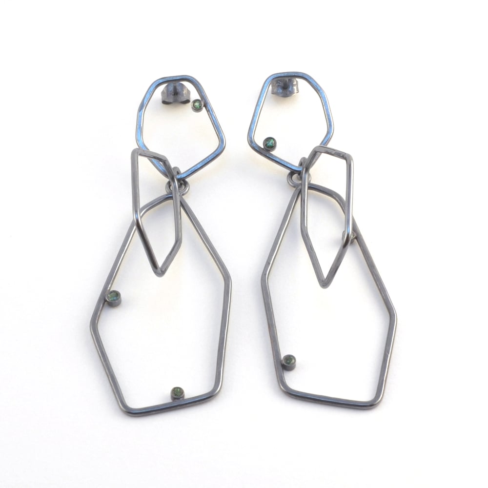 Handcrafted silver earrings. Available with diamonds, rubies or sapphires in either a polished, oxidized or gold plated finish.